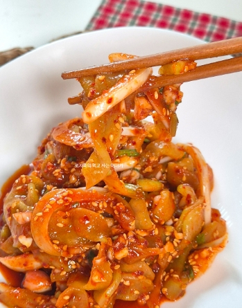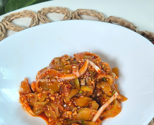 그냥 먹으면 물컹하고 질길 수 있지만, 씨를 제거하고 소금에 절이면 아삭한 식감으로 변신합니다. 시원하고 새콤한 무침 양념과 어우러지면 입맛 없는 여름에도 밥 한 공기 뚝딱이죠!