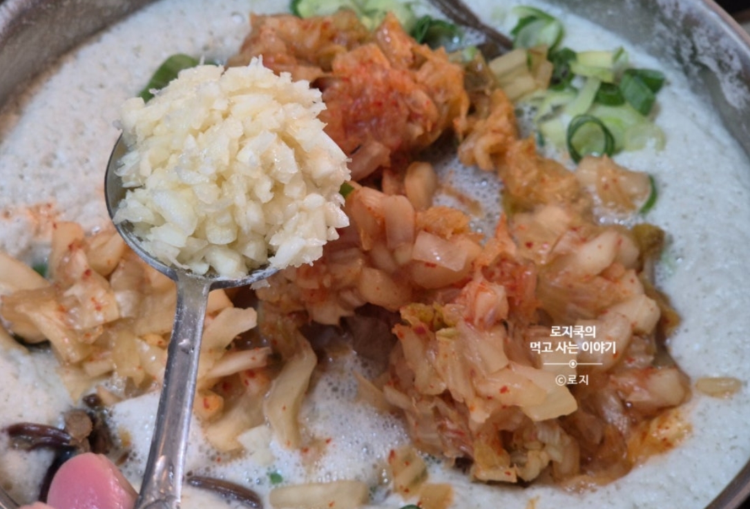 5. 간 마늘 1 큰 술을 넣어줍니다. 저는 고기 잡내를 잡기 위해 썼는데, 제사에 올리는 음식이라 마음에 걸리시는 분들은 생략 가능합니다.