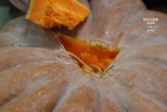 1. 먼저 늙은호박의 꼭지를 제거해 줍니다.
