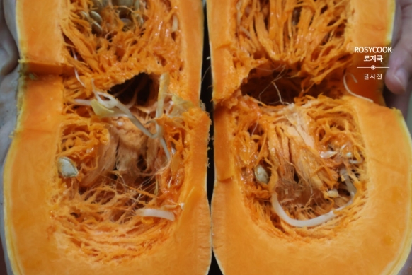 1. 먼저 늙은호박의 꼭지를 제거해 줍니다.