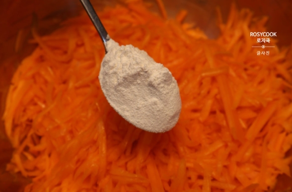 7. 부침가루 6 큰 술을 넣어줍니다. 조물조물 무쳐가며 잘 버무려줍니다.