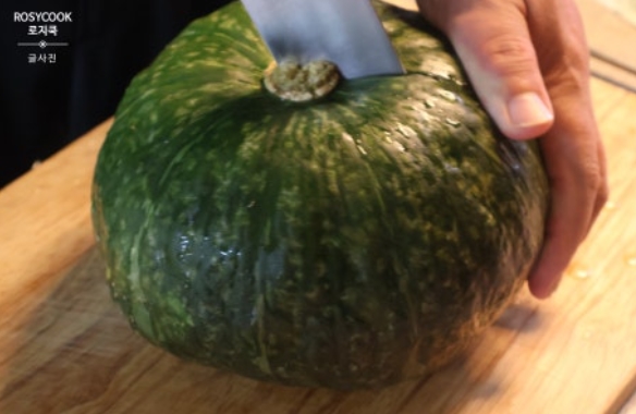 1. 단호박을 4등분 해줍니다. 단호박 1726g을 사용했습니다.