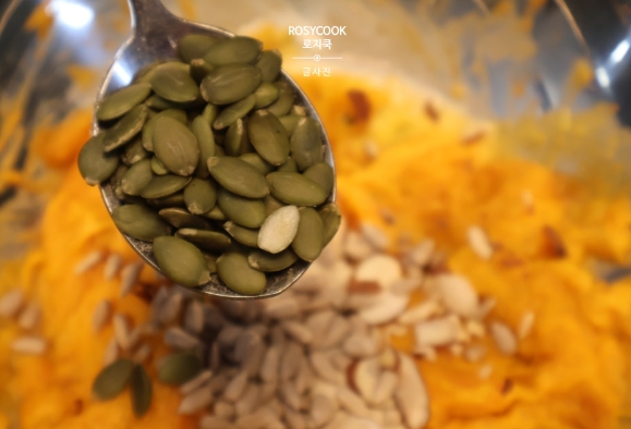9. 아몬드 슬라이스와 해바라기씨를 넣어줍니다.