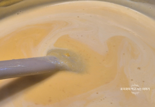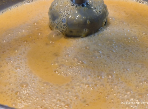 핸드블렌더나 믹서기를 활용해 곱게 갈아주세요. 걸쭉한 농도가 되면 OK!