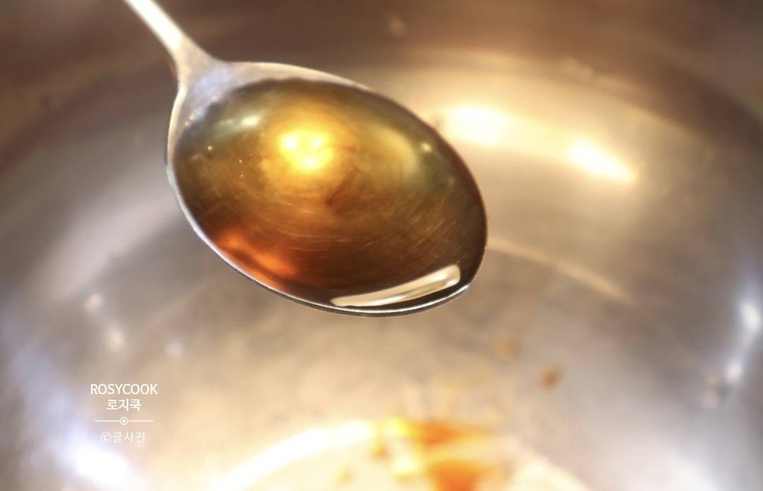 6. 진간장 1 큰 술과 참치액 1 큰 술을 넣어줍니다.