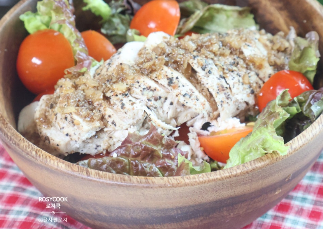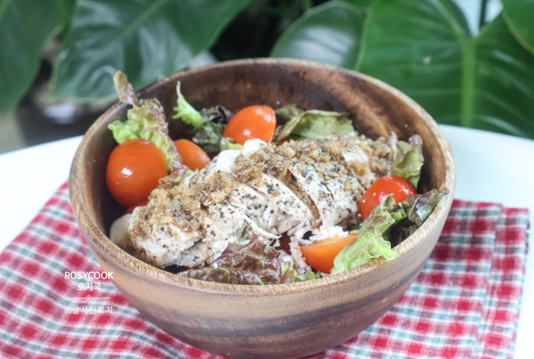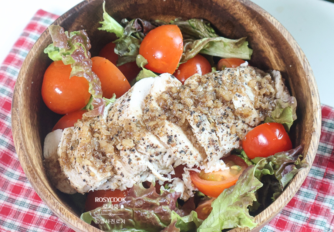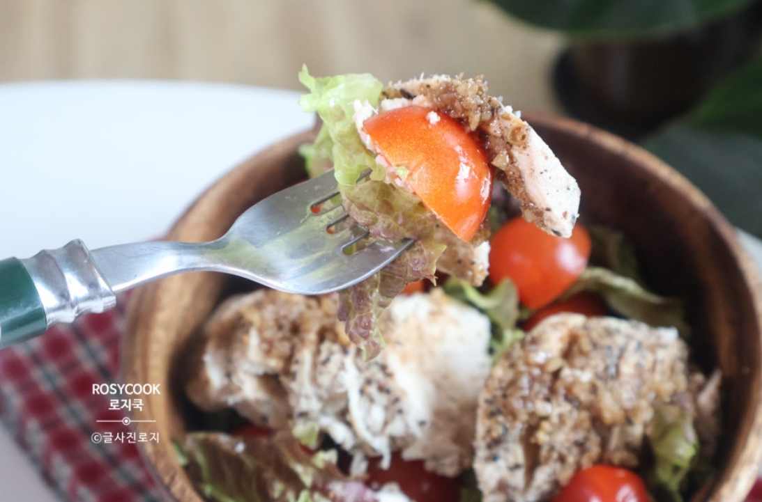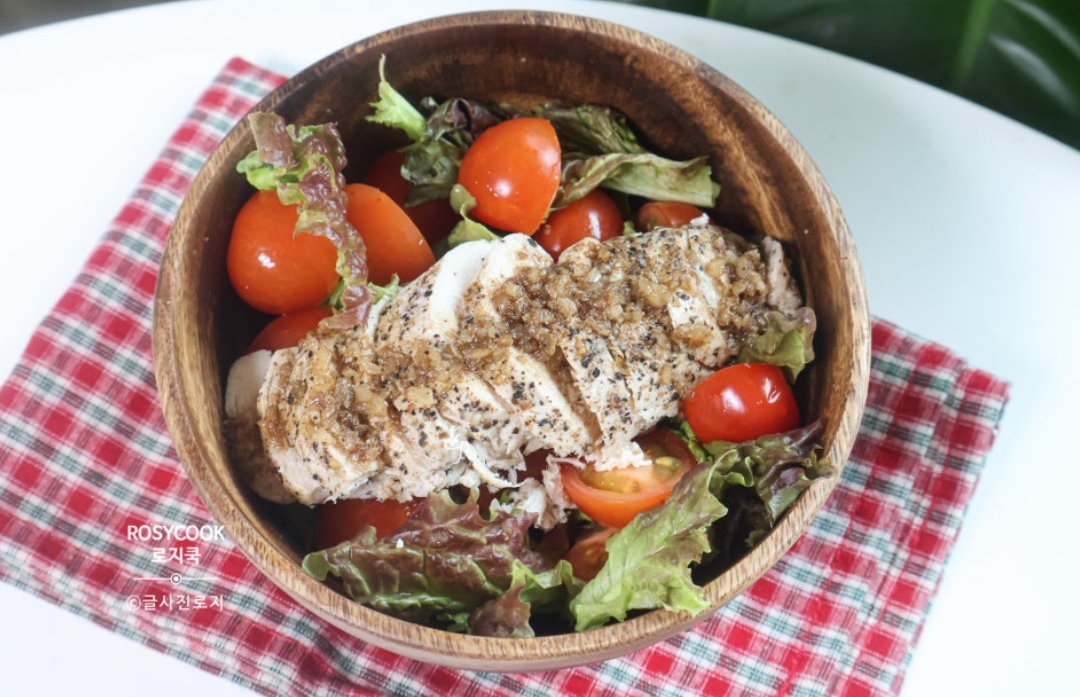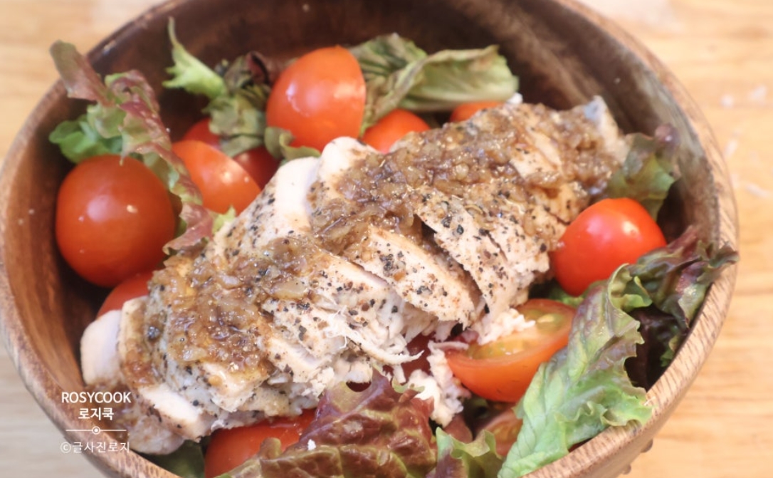 새콤한 맛이 닭가슴살과 잘 어우러지니, 닭가슴살 샐러드 이렇게 만들어서 드시길 바랍니다. 채소는 원하시는 걸로 다양하게 변형이 가능합니다. 그럼 새콤 산뜻한 발사믹드레싱을 곁들인 닭가슴살샐러드 맛있게 만들어서 드시길 바랍니다.