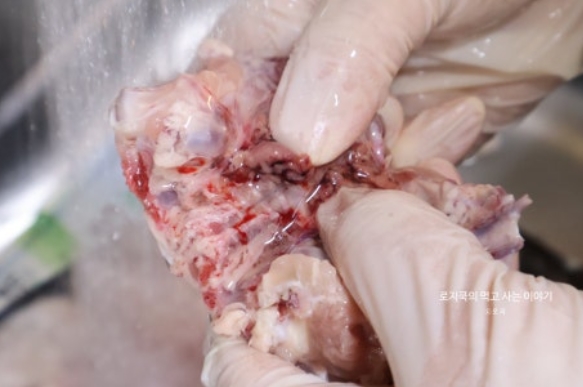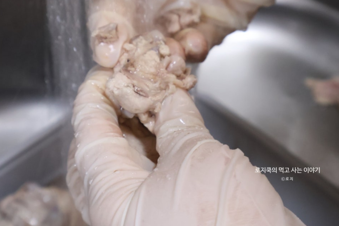 1. 닭은 닭볶음탕용 닭 1.3kg를 준비합니다. 흐르는 물에서 꼼꼼하게 세척해 주시면 되고, 남아있는 내장도 제거할 수 있도록 문질러서 세척해 줍니다. (뼈 사이사이를 깔끔하게 세척)
