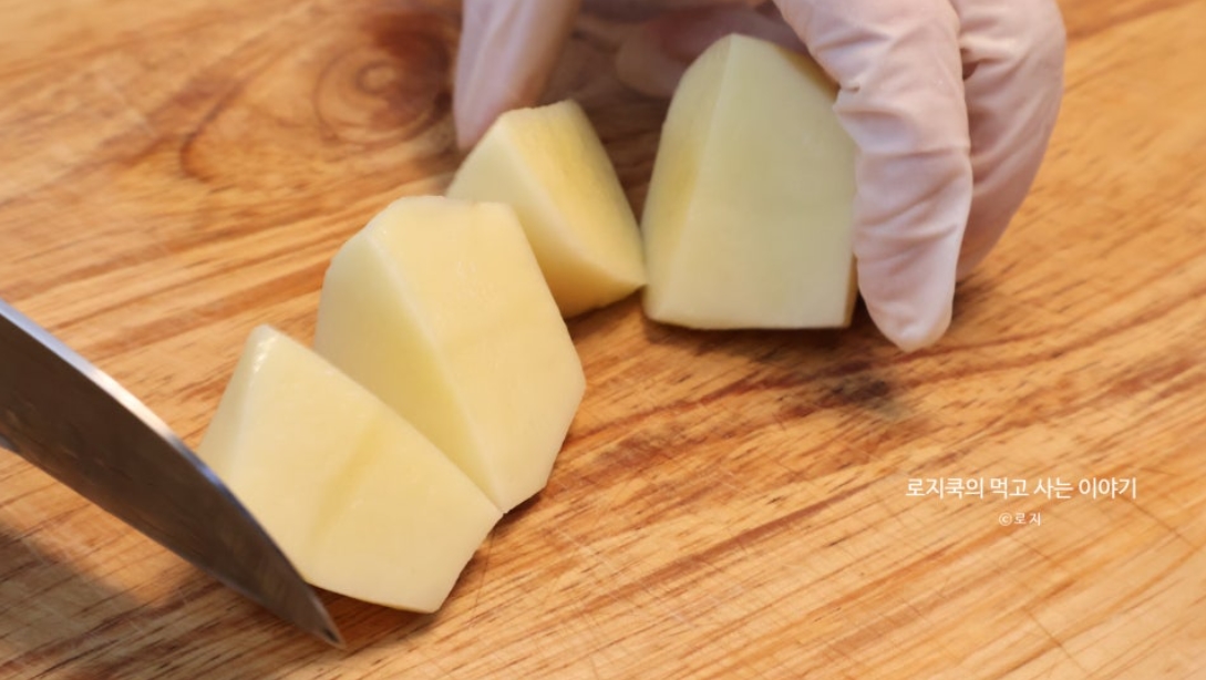 4. 껍질 깐 감자 303g을 먹기 좋은 크기로 썰어줍니다.