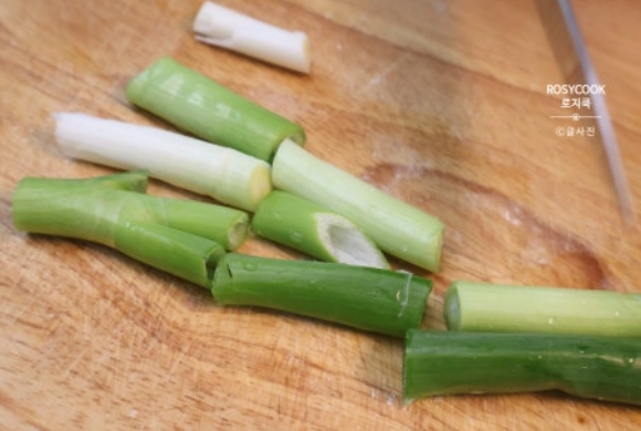 7. 대파를 큼직큼직하게 썰어서 올려줍니다.