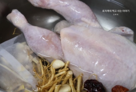 4. 삼계탕용 닭을 넣고 물을 부어줍니다.