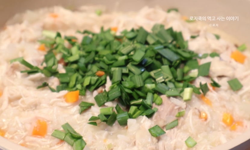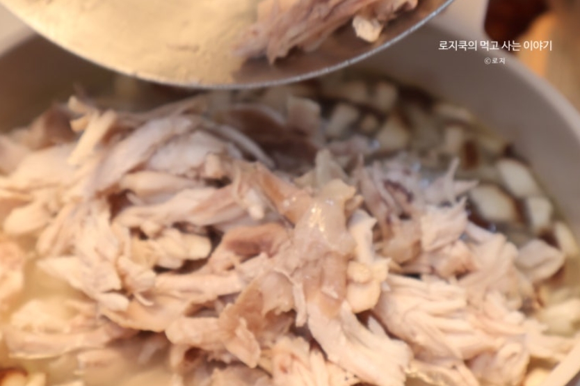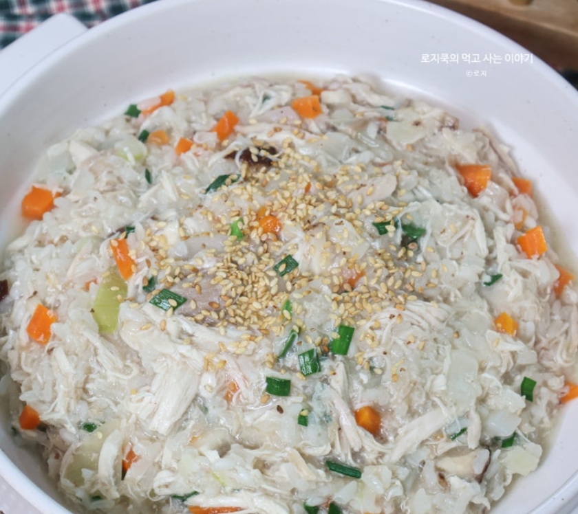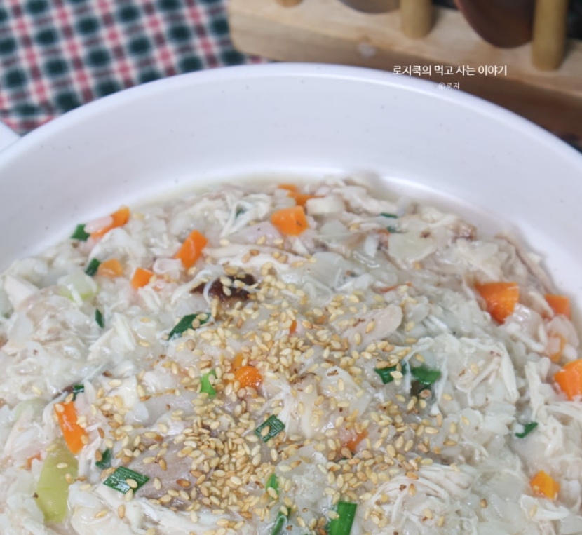 삼계탕용 닭을 푹 끓여 살을 찢어 넣었기 때문에 영양만점 닭죽이니 이렇게 끓여서 드셔보세요. 그럼 닭죽 맛있게 만드는 법 황금 레시피 시작해 보겠습니다.