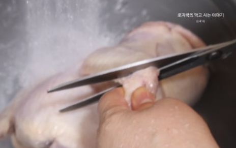 1. 흐르는 물에서 삼계탕용 닭을 세척해 줍니다.
