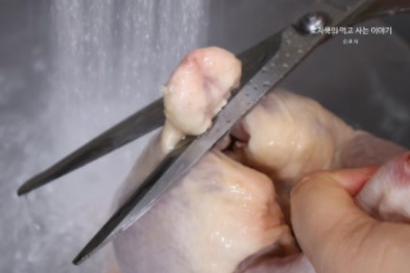 2. 날개 부분의 날카로운 부분을 잘라주시고, 응꼬부분도 제거해 줍니다.