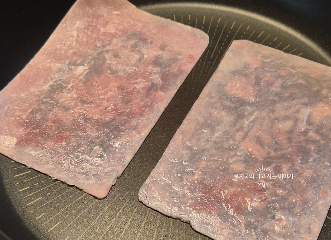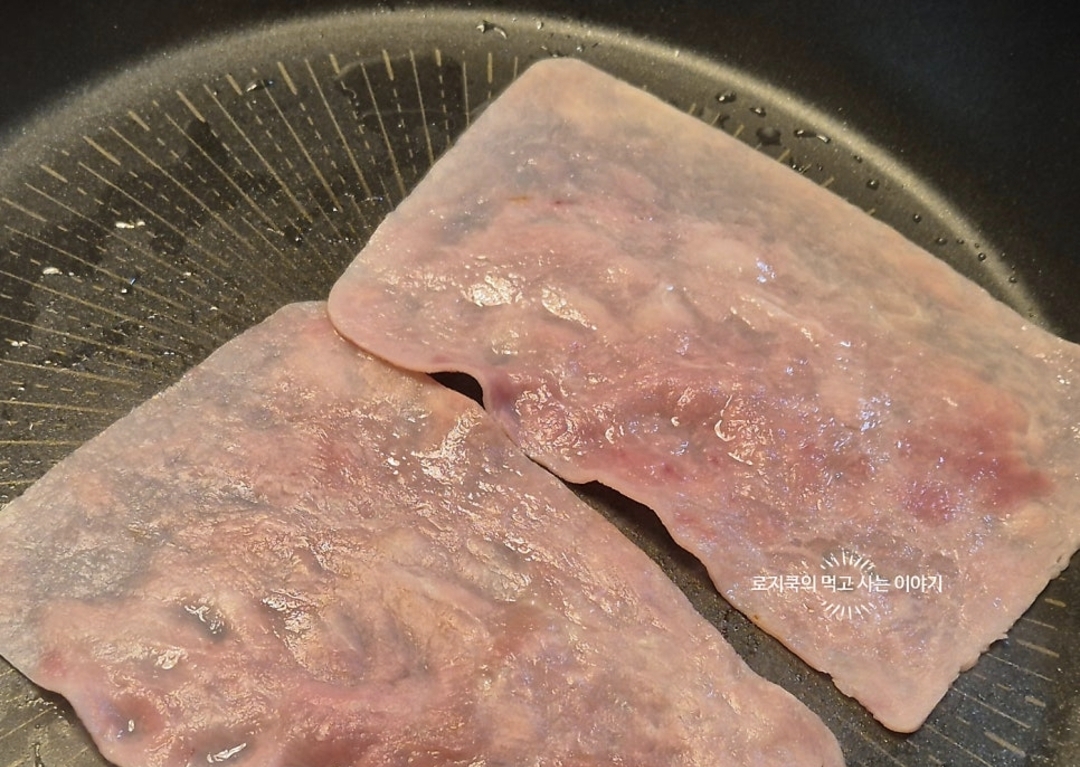 7. 슬라이스 햄을 살짝 구워줍니다.