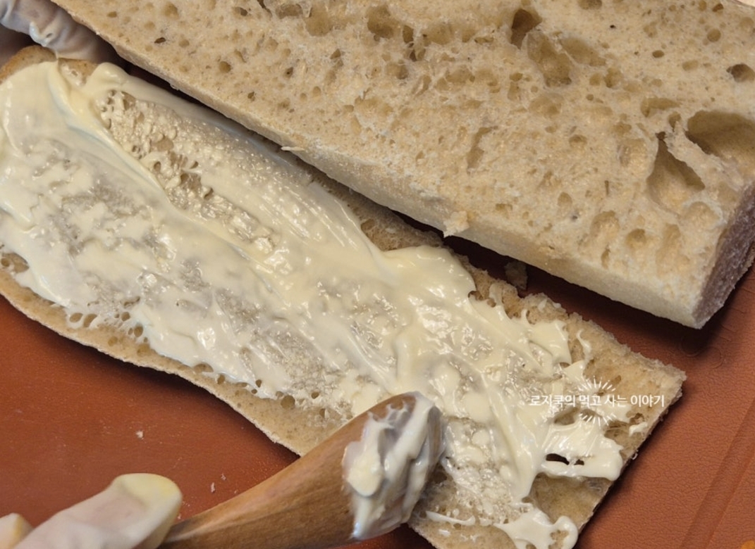 12. 나머지 바게트에 아보카도 마요네즈를 펴 발라주고 덮어줍니다.