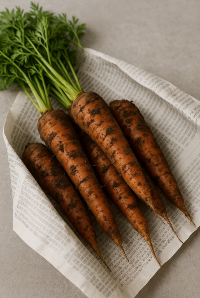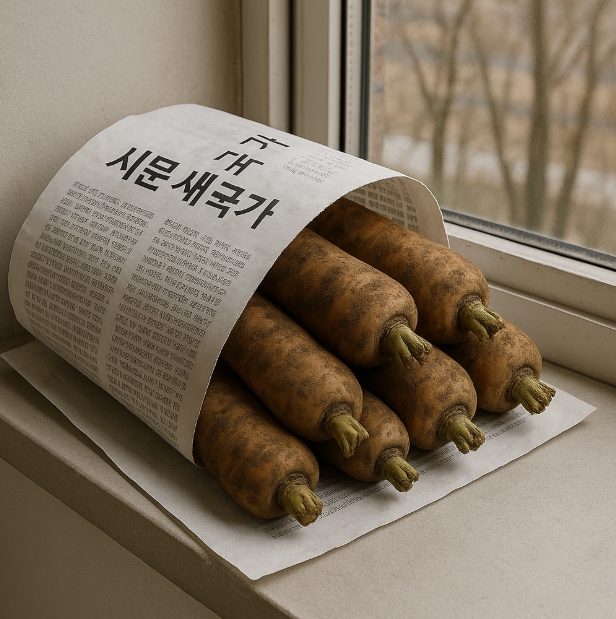 흙당근은 절대 세척하지 않고 그대로 신문지에 싸서 서늘하고 통풍이 잘 되는 곳에 두는 게 정답입니다.