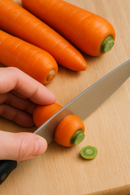 TIP : 당근 끝부분(줄기 쪽)을 살짝 잘라내고 보관하면 수분 손실을 줄일 수 있어요.