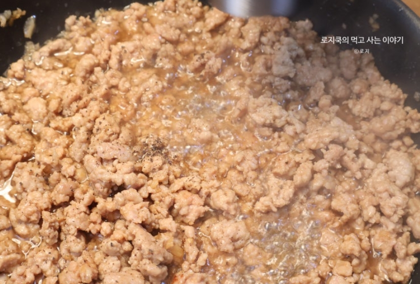 2. 식용유를 적당히 둘러준 후, 돼지고기 다짐육을 볶아줍니다.