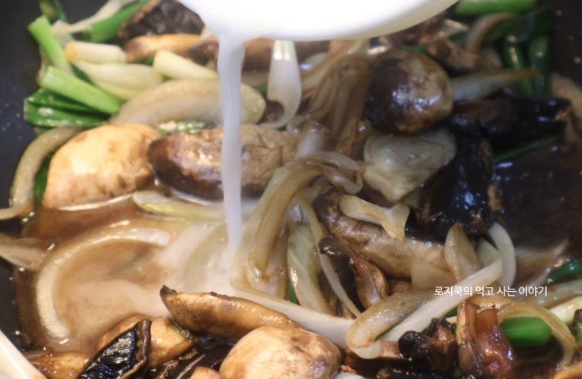 중식 느낌으로 만들어본 양송이덮밥 입니다. 전분가루를 넣어 걸쭉하게 만드는 것인데요. 버섯의 씹히는 식감이 좋은 덮밥이랍니다.