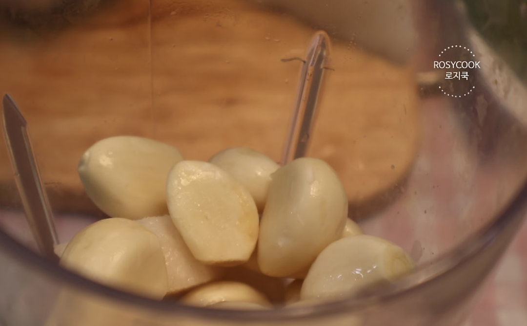 3. 믹서에 배, 양파, 마늘 15쪽, 생강 25g, 청양고추를 넣어줍니다.