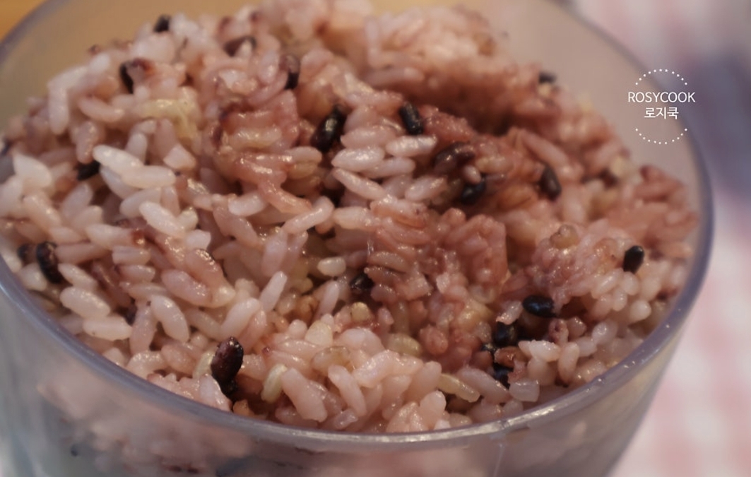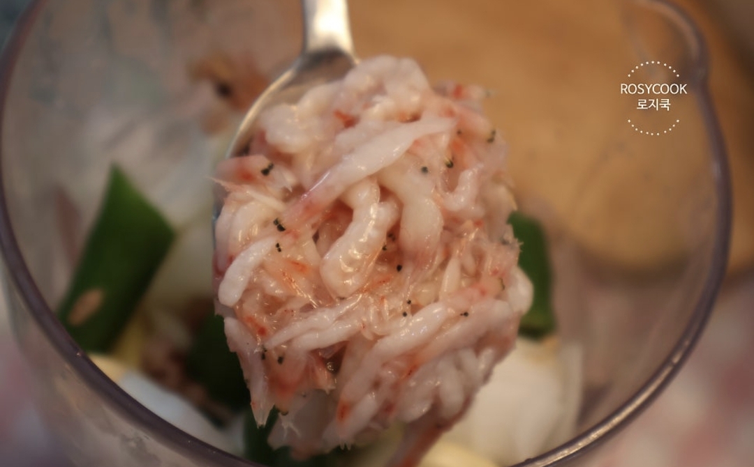 4. 밥 반 공기 넣어주고 새우젓 1 큰 술을 넣어줍니다.