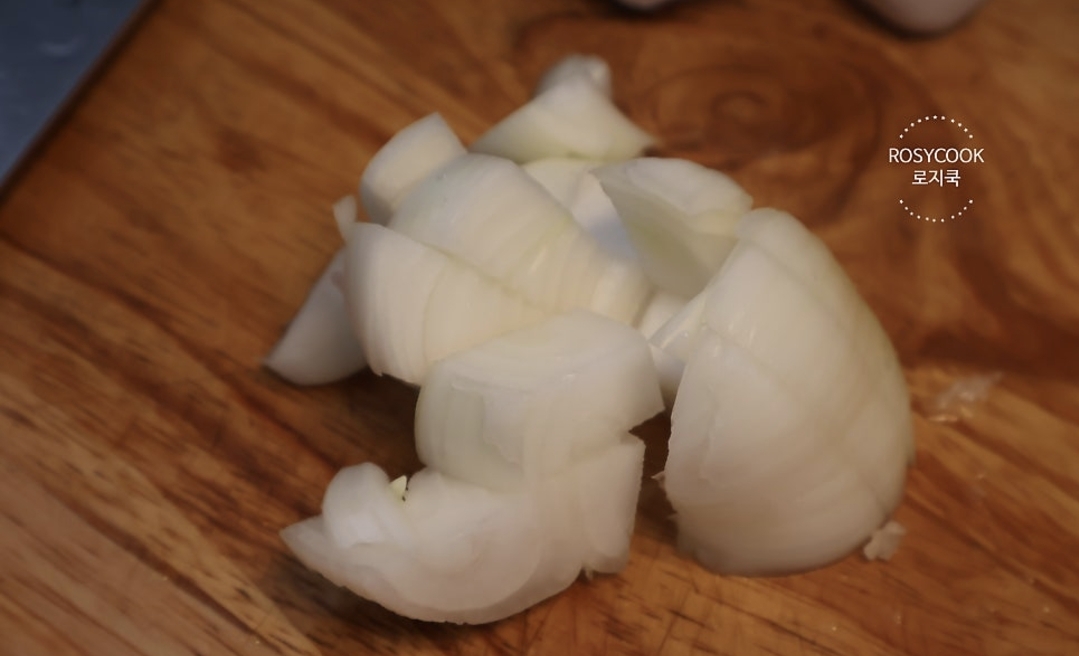 2. 양파 1/2개도 갈기 좋게 썰어주시고 청양고추 5개도 썰어줍니다.