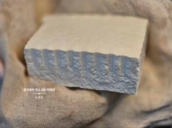 4. 두부 400g을 면포에 넣고 수분을 꽉 짜줍니다.