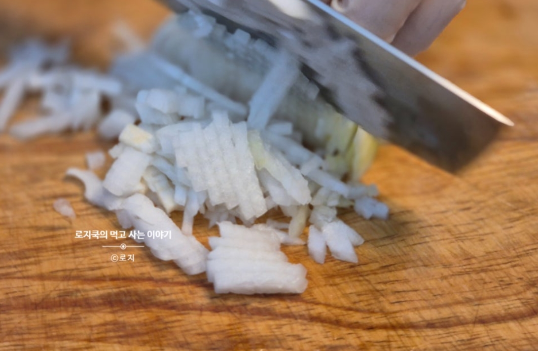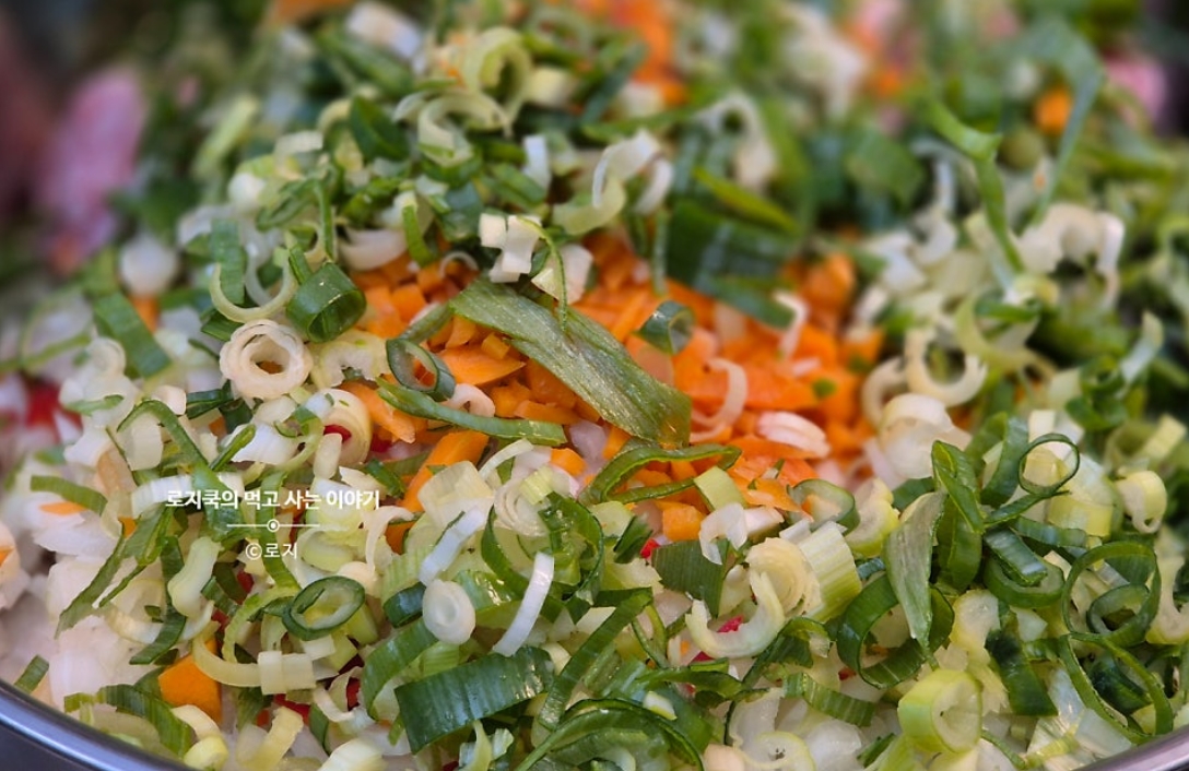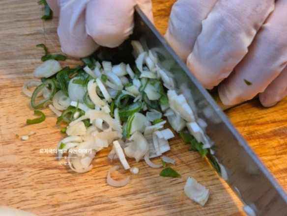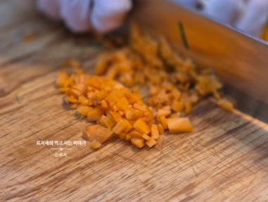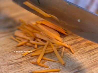 1. 대파 2대를 잘게 다져주시고, 당근은 1줌 정도 나오게 잘게 다져줍니다.