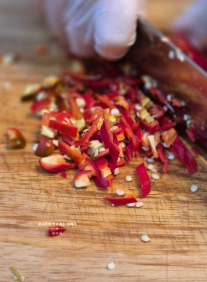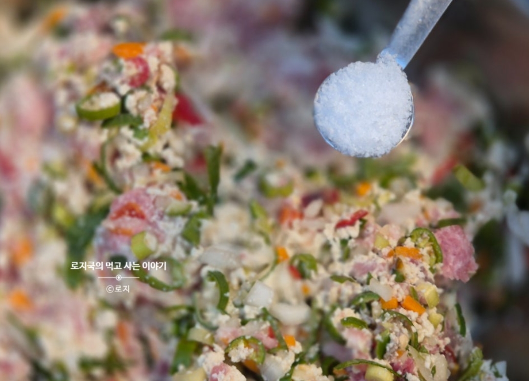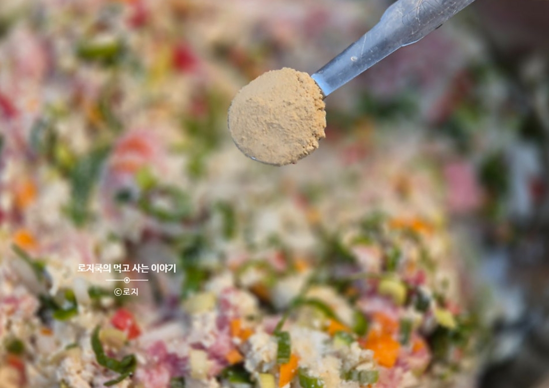 7. 잘 버무려준 후, 후춧가루를 적당히 뿌려서 한 번 더 버무려줍니다.