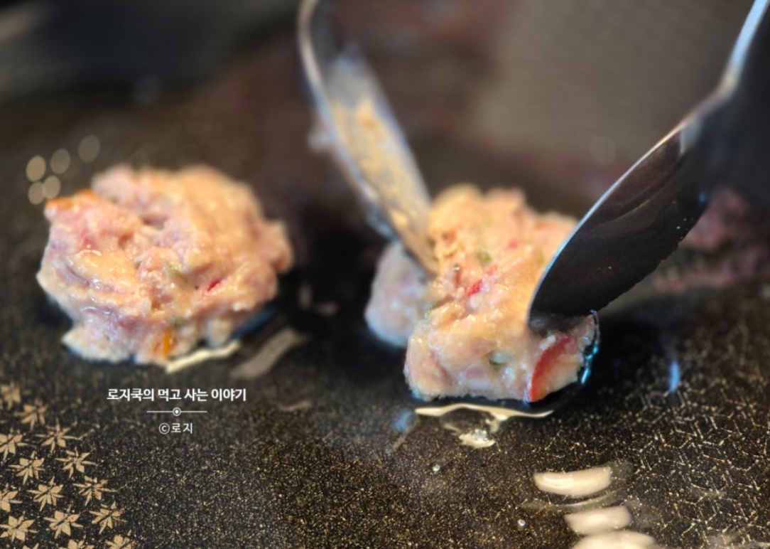 10. 숟가락으로 떠서 동그랗게 모양을 잡아주고 단단하게, 노릇하게 잘 익었다면 뒤집어서 나머지를 노릇노릇하게 구워줍니다.