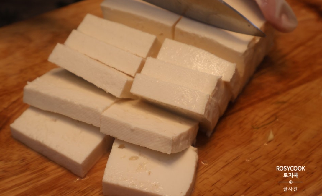 5. 두부 340g을 적당한 두께로 썰어줍니다.