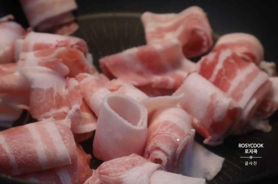 6. 대패삼겹살 166g을 볶아줍니다.