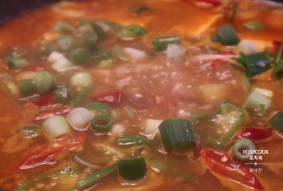 14. 청양고추와 대파를 넣고 다시 펄펄 끓어오를 때까지 끓여줍니다.