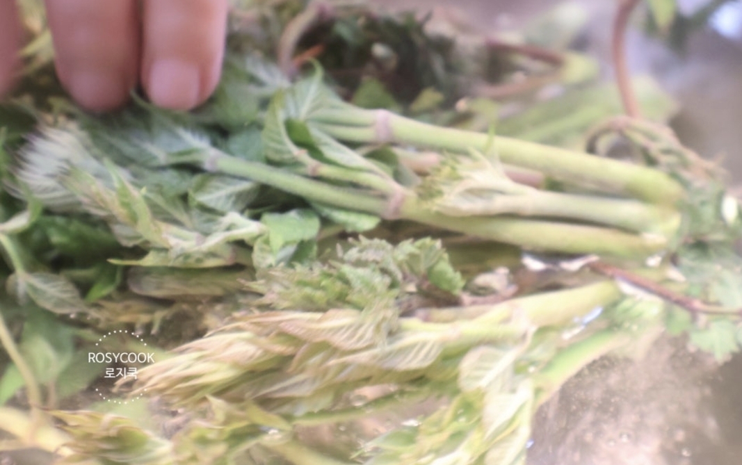 3. 흐르는 물에서 두릅을 헹궈줍니다.