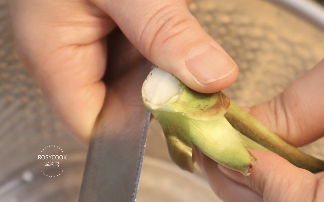 2. 껍질이 있다면 벗겨줍니다. 제가 사용한 참두릅은 아주 연해서 가시가 없었는데 줄기 부분에 가시가 있다면 칼로 살짝 긁어내시면 됩니다.