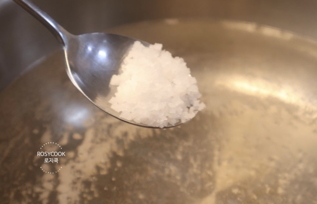 4. 굵은소금 1/2 큰 술을 끓는 물에 넣어줍니다.