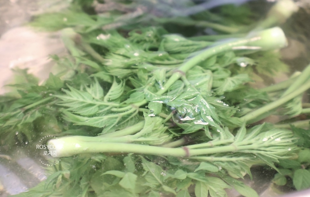 3. 흐르는 물에서 두릅을 헹궈줍니다.