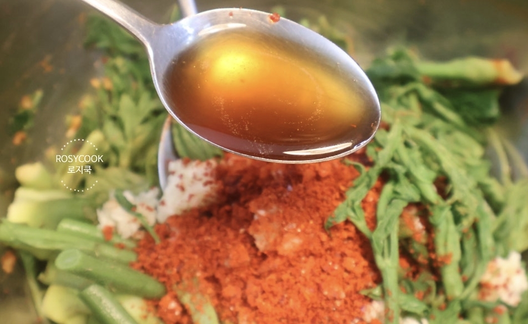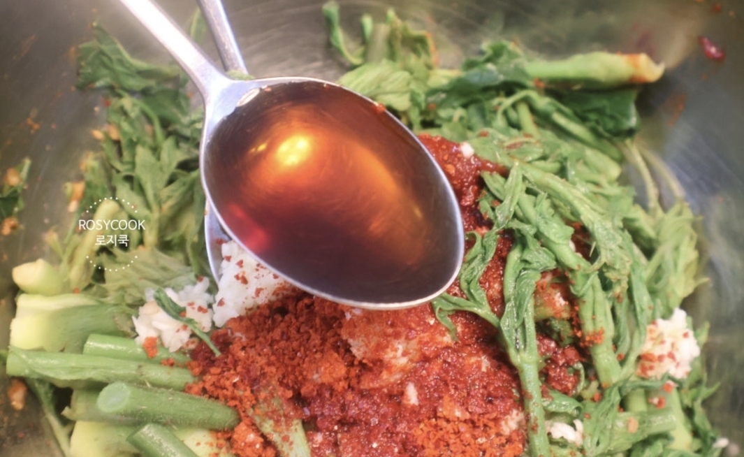 11. 들기름 2 큰 술을 둘러준 후, 다시 조물조물 무쳐 마무리해 줍니다.