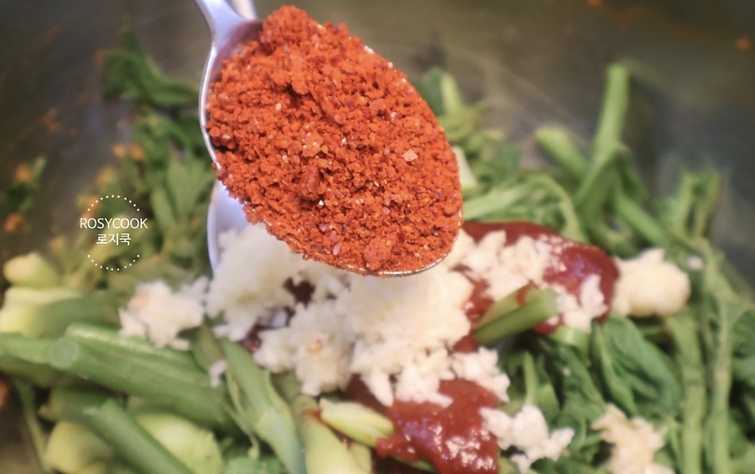 8. 고춧가루 1 큰 술과 매실청 2 큰 술을 넣어줍니다.