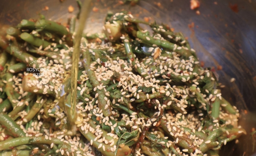 10. 양념이 잘 배도록 조물조물 무쳐준 후, 깨를 전체적으로 뿌려줍니다.