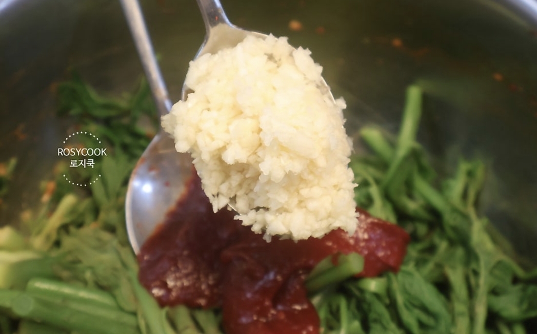 7. 고추장 1 큰 술과 간 마늘 1 큰 술을 넣어줍니다.