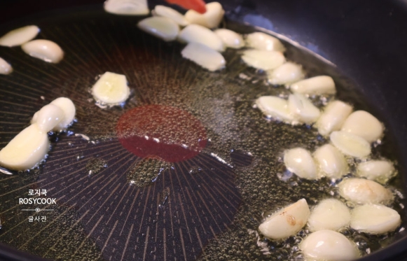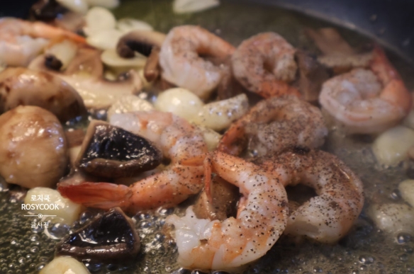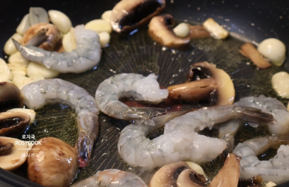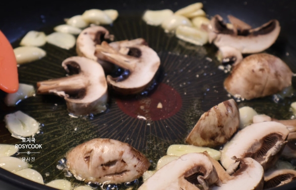 3. 마늘과 양송이버섯을 볶아줍니다.