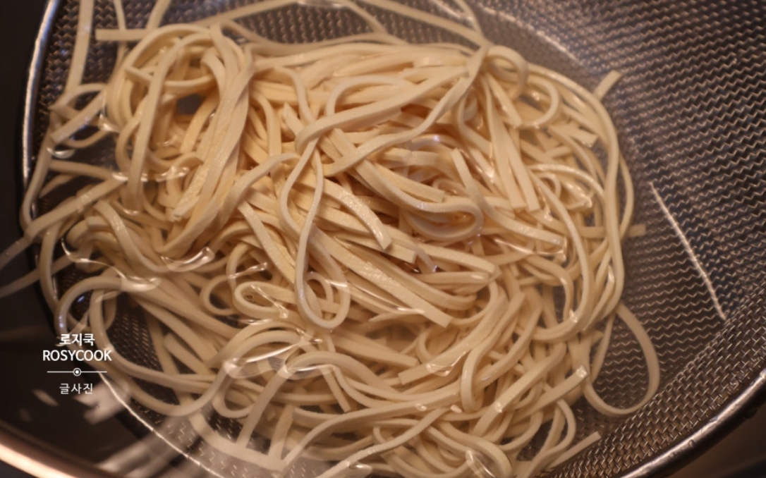 5. 체에 밭쳐서 한 번 물에 가볍게 헹궈줍니다.