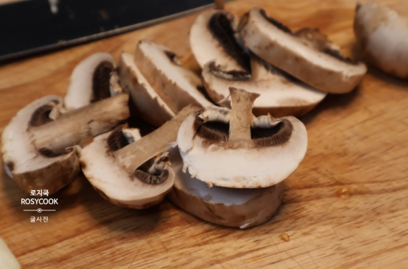 1. 마늘 10쪽과 양송이버섯 3개를 썰어줍니다.