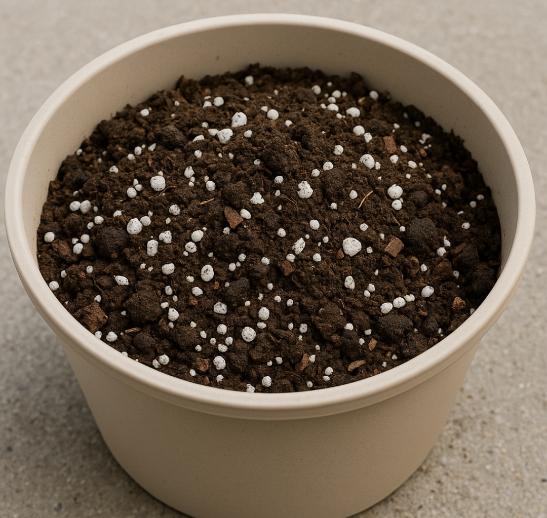 보통 상토 + 펄라이트 + 퇴비를 섞은 혼합토를 사용하면 이상적입니다.