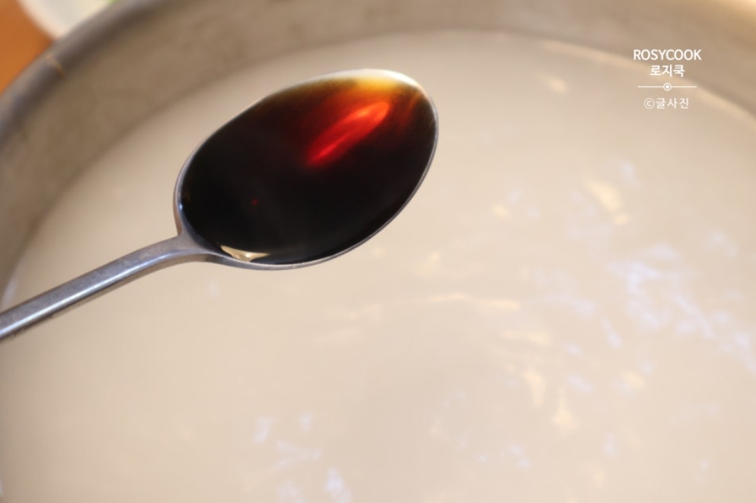 17. 소금 1/2 큰 술을 넣어줍니다. 국간장만 넣으면 국물 색이 너무 진해지니, 소금 간을 더해줍니다. 간은 취향껏 조절해 주시면 됩니다.