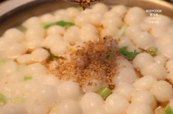 14. 끓어오르면 불려둔 조랭이떡을 넣어줍니다.