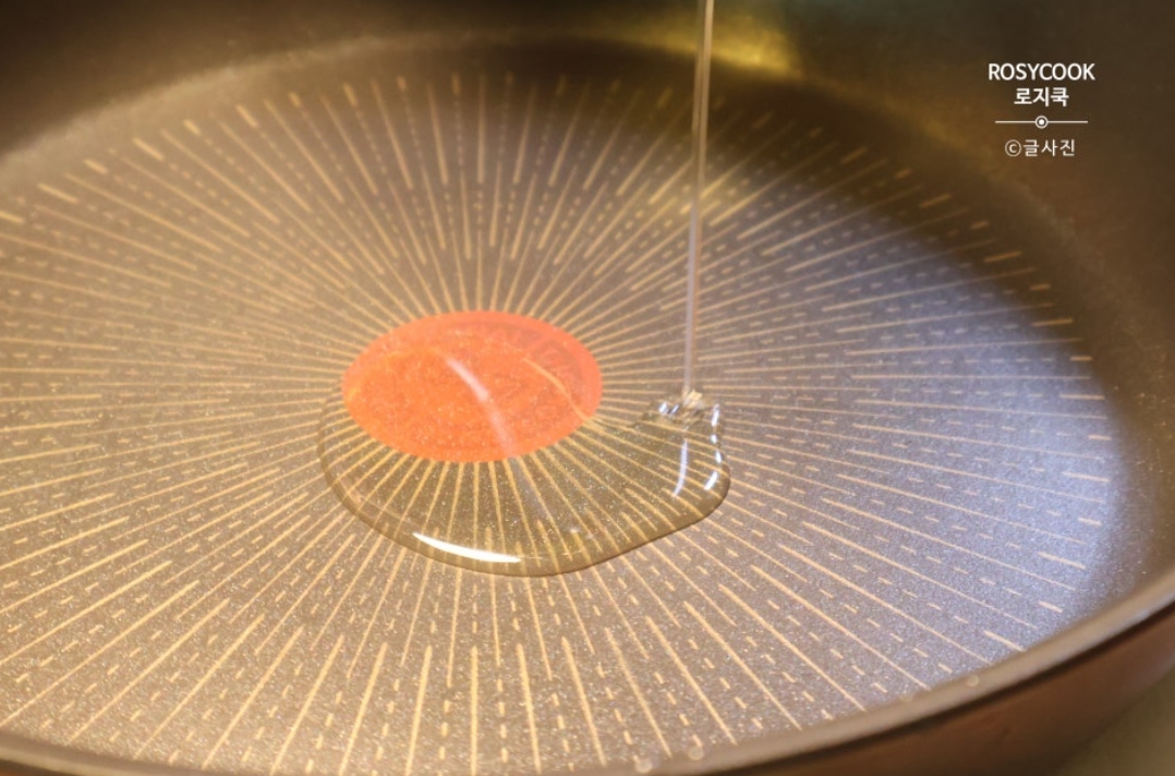 8. 식용유를 둘러준 후, 팬을 예열해 줍니다.