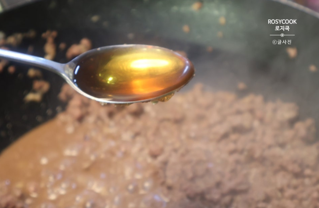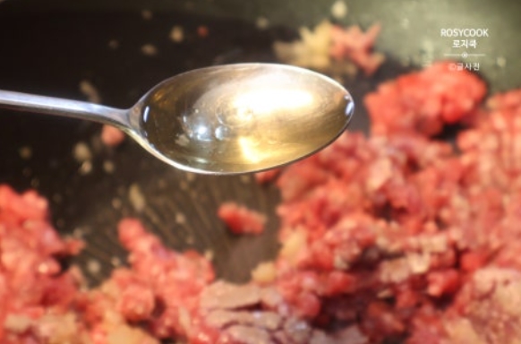 2. 소고기 다짐육 382g을 넣고 볶아줍니다.