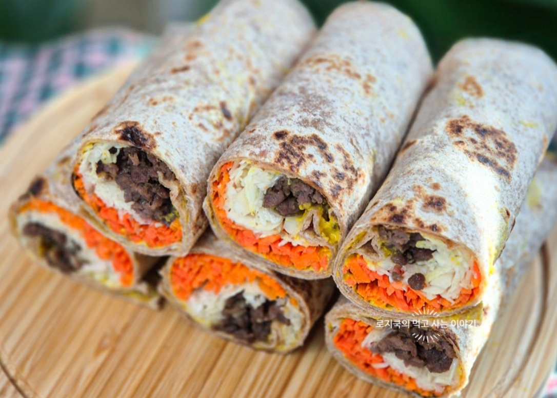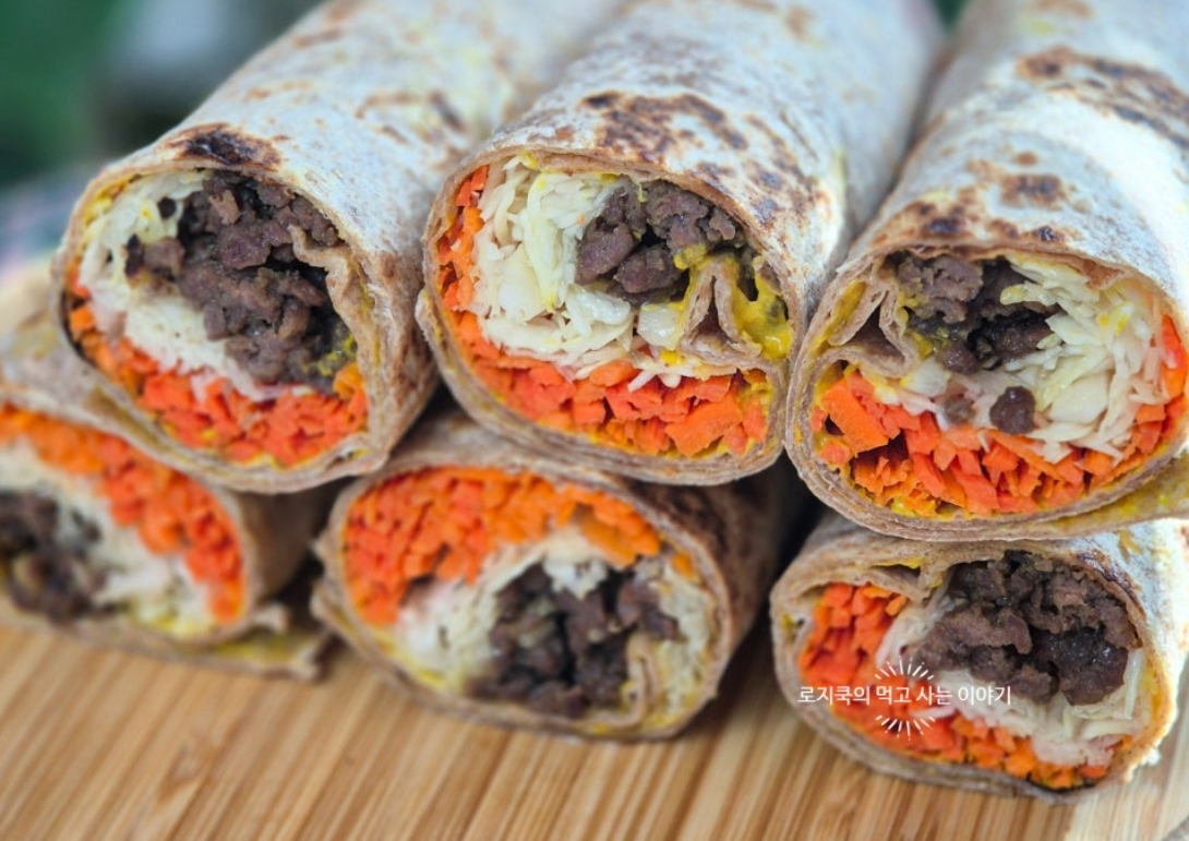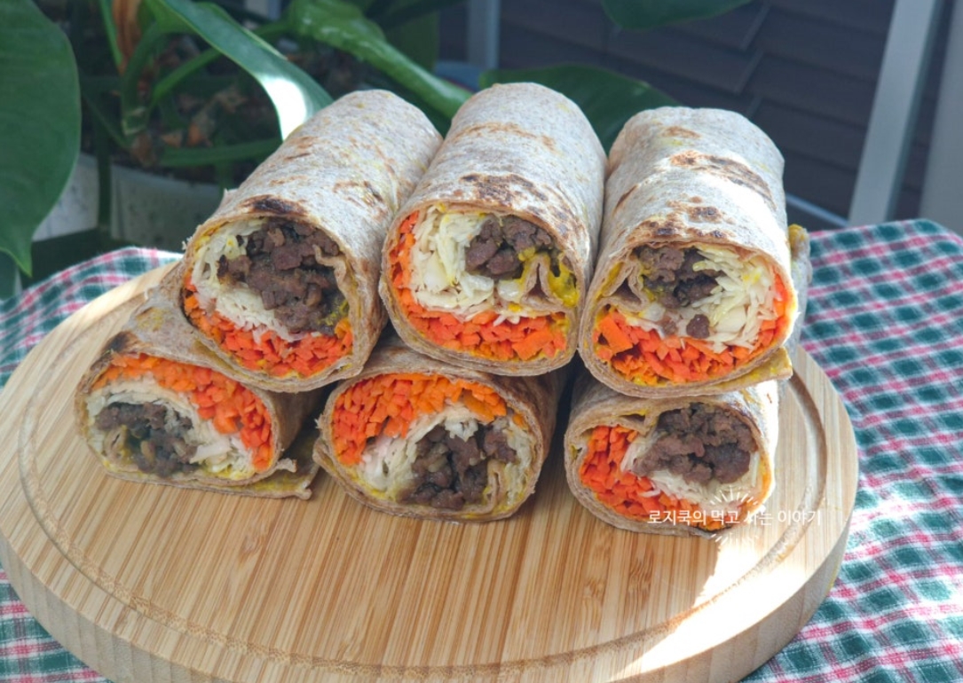 오늘은 든든하면서 간단하게 먹기 좋은 또띠아롤 샌드위치 또띠아 샌드위치 레시피 가지고 왔습니다. 소고기 다짐육을 활용해 불고기를 만들어 채우는 것입니다. 적당히 달큼한 불고기와 채소의 씹히는 식감이 잘 어우러지는 또띠아롤 샌드위치랍니다.